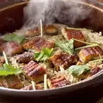 旬の食材がたっぷり入った『土鍋ご飯』。ふたを開けると、素材のおいしそうな香りがふわっと広がります。四季折々の味が楽しめる、締めに食べたいメニュー。炊き上がりまでに30~40分かかるので、ぜひ早めにオーダーを。