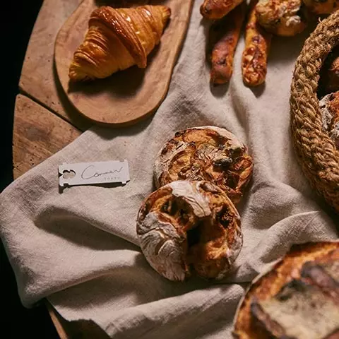 パンの国際⼤会「モンディアル・デュ・パン」で⽇本⼈初の総合優勝を果たした⼤澤秀⼀⽒が代表を務めるベーカリー。朝⾷の主役の⾷パン、バゲット、クロワッサンなどの定番な⾷卓パンから、惣菜パンや創作系のパン、具材をカスタマイズできるサンドウィッチまで、約100種類ものバリエーション豊富なパンが並びます。