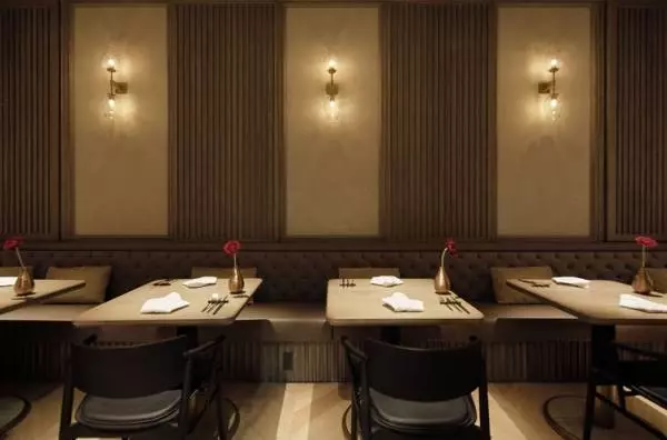 エレガントなトーンで統一された店内は、テーブルが均等に並ぶ全12席。ソファも椅子も座り心地が非常によく、特別な食事が始まる期待が高まります。「誰かの家に招かれたような空間をイメージしました。カウンター席ではなくテーブル席にすることで、料理人ではなくサービスのプロである接客スタッフがお客様に対応します。それは、料理人が料理に集中できる環境でもあります」。