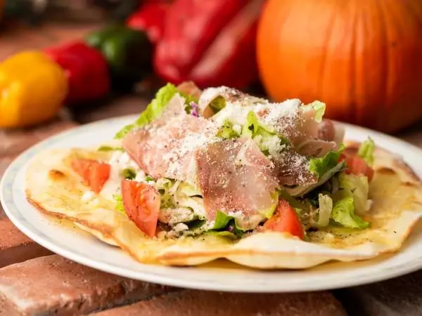 たっぷりの野菜と生ハムをトッピングした『ピッツァニューヨーク』