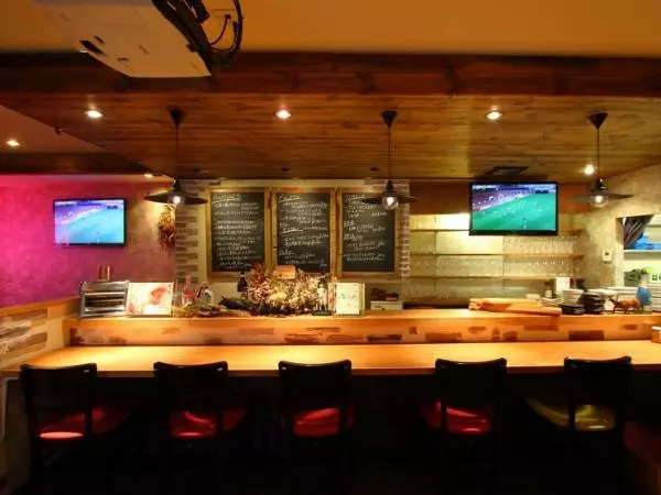 店内は大人カジュアルな雰囲気。仕事帰りに立ち寄るもよし、デートや記念日に訪れるもよし。さまざまなシーンで使えるオシャレな空間になっています。大型のスクリーンが設置されていて、スポーツのパブリックビューイングも可能。20名から貸し切りにもできるので、パーティにもぴったりです。