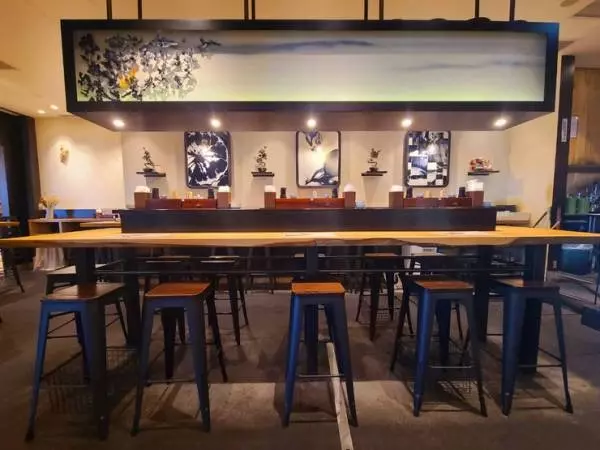 白と黒を基調に設えられた店内は、シックでスタイリッシュ。和モダンな空間にはボサノバやジャズが流れ、心地よい雰囲気です。天ぷらとシャンパンを味わう『天シャン』など、オシャレな楽しみ方もOK。一杯だけでも気軽に立ち寄れるので、自然を満喫した帰り道に足を運んでみるのもオススメ。美酒を傾けながら、オリジナリティあふれる天ぷらを食す贅沢な時間が過ごせます。