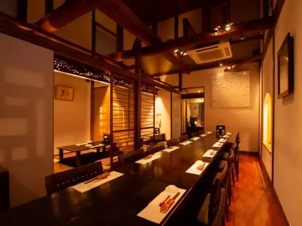 古民家を改装した、隠れ家的な佇まい。趣ある木製の門をくぐり、緑を眺めながら店内へ足を踏み入れれば、純和風の空間が広がっています。BGMとして流れるジャズを聞きながら、ゆったり気分でいただく食事は格別。
