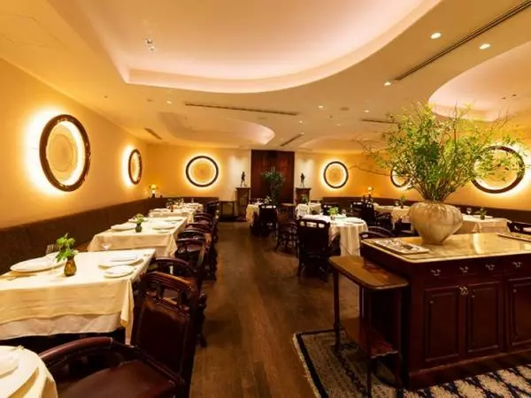 アートにつつまれた優美なエントランスを抜けた回廊には数々の絵画が飾られ、まるで美術館のような趣。フランスのシャトーにあるシャンデリアをモチーフにした照明やテーブルにさりげなく置かれたガレの花瓶などの芸術品に囲まれた空間で、伝統的な本格フレンチを味うという贅沢なランチタイムが過ごせます。