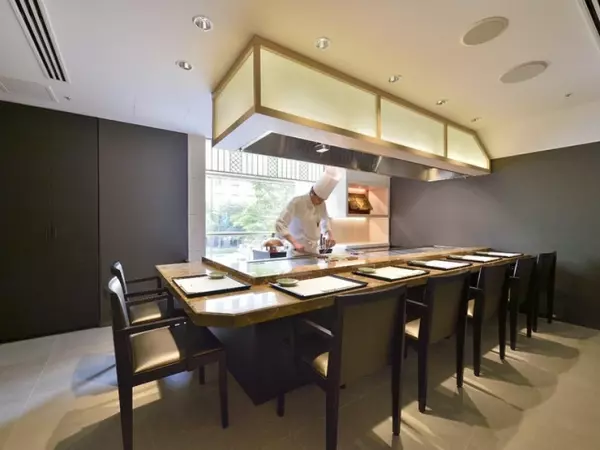店内は清潔感ある洗練された空間で、銀杏の葉をモチーフに和を感じられる雰囲気。カウンター席の目の前で、ライブ感たっぷりに仕上げられていく鉄板焼きランチはまさに非日常。個室にもカウンターが用意され、接待や大切な方との食事など、特別な日にうってつけの覚えておきたい一軒です。
