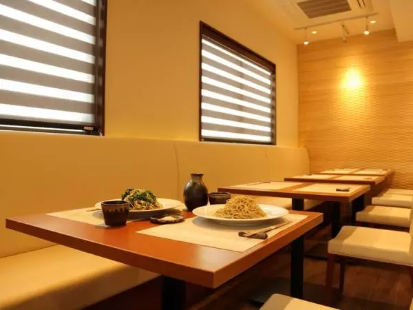 車であきる野ICから2分の同店は、和の風情に満ちた店構え。書家が手がけた白く大きな暖簾をくぐると、心落ち着く和の空間が広がっています。古民家風の設えや、益子焼を中心にそろえられた器は、時間をかけてゆったりと蕎麦を楽しんでほしいという店主の思いの表れ。こだわりの空間で、しっとりとデートを楽しみましょう。