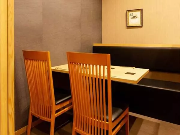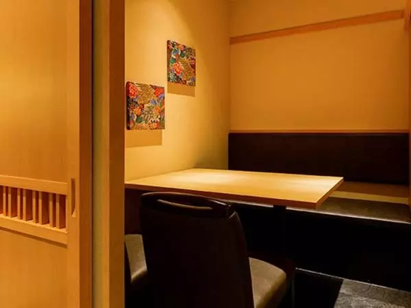 凛とした空気の雅やかな店内には、洗練されたカウンター席と個室席を用意。職人の技が望めるカウンターもいいけれど、特別なデートの日は周りを気にせず、二人だけの時間を過ごせるプライベート空間の完全個室席で過ごしたいもの。大切な人を誘えばきっと喜んでもらえる一軒です。