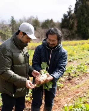 能登半島から大橋でつながる能登島にある「NOTO高農園」では、当時断水しており、野菜ひとつを洗うことも困難な中「シェフたちに来てもらえると力になる」と、長年かけて育ててきた赤土の農園を案内してくれたそう。