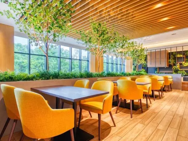 梅小路京都西駅から徒歩5分にある、「梅小路ホテル京都」のダイニングとして誕生した【Umekoji Potel KYOTO Restaurant】。広大な梅小路公園の緑を望む開放的な空間で、京都の食文化が体験できるレストラン&カフェです。天井や床など、木をふんだんに用いた店内にも緑が配され、まるで公園と一体化したような爽快感に満ちています。