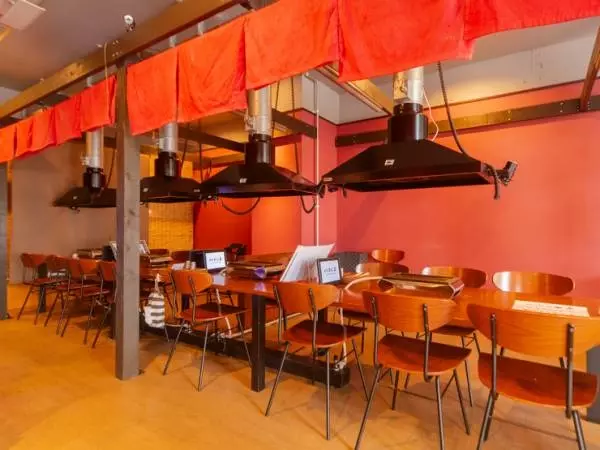 リラックスできる気取らない店内で、目一杯地元の肉を楽しめます。テーブル席にはロールカーテンがあり、周囲の視線を気にせず食事を楽しめるのもうれしいところ。テーブル席のほか、座敷も完備されているので、2時間飲み放題付きのコース料理で旅先での宴会を満喫するのもよさそうです。