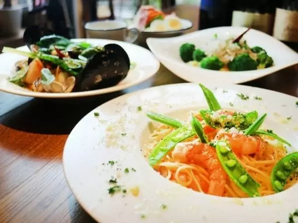 地元の契約農家から届く安全・安心の旬野菜を中心に、バラエティ豊かなメニューが楽しめます。ほかにも、本格炭火肉料理や新鮮な魚介を使った料理、パスタと、こだわりの料理が登場。サラダ・スープ付きの各種パスタランチや、土日祝限定の『本日のラザニア』、各種コースなど、ランチメニューも多彩です。