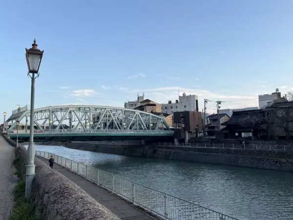 犀川大橋が美しい犀川沿いには町家が立ち並び、金沢らしい風情が感じられます