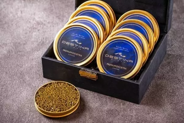 豊潤なキャビアオイルがオーガニックバターのような味わいのロシアンスタージオン単一種のオシェトラキャビア使用し、塩分濃度や熟成期間を指定した上野氏のオリジナル