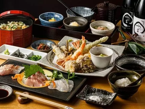 車海老や魚など15種の天ぷらにお惣菜が付く『天ぷらコース-松-』