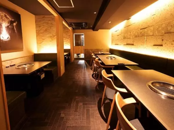 高級感あるシックなデザインの店内には、テーブル席、掘りごたつ式、2名から利用できる多彩なタイプの個室も完備。まざまなシーンに合わせて自在に選べます。ゲストの会話のタイミングなどに配慮した料理の提供、肉の部位や焼き方の説明など丁寧な接客も人気で、記念日や食事会にも最適な一軒です。