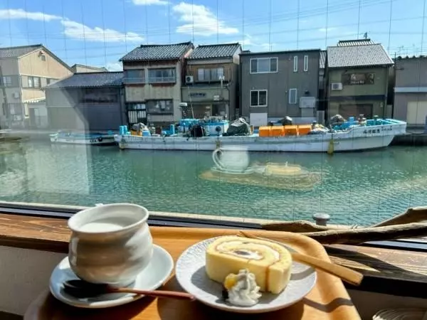 【番茶カフェ】では、こだわりのドリンクと、【野村屋】のどら焼きや【菓子処あん】のケーキなど、内川周辺にあるお菓子を一緒にいただけます。川辺の景色を眺めながらのコーヒーは格別においしかったです。