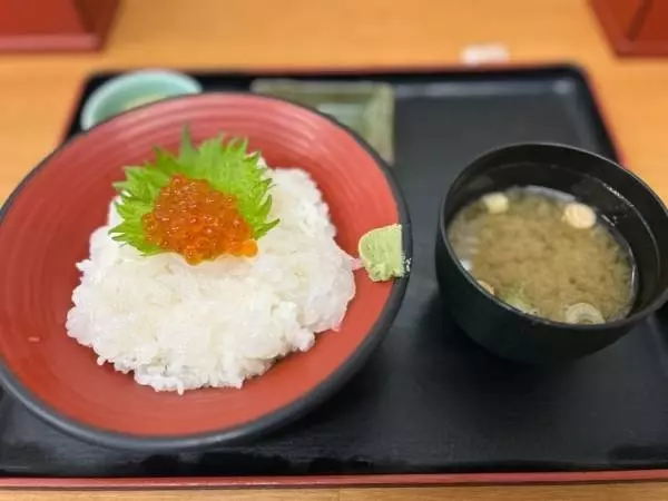 この日は、シロエビ漁の解禁日ということで、シロエビがたっぷりとのった『白えび丼』をいただくことに。白く輝くシロエビの上には、イクラのアクセント。なんとも贅沢です。シロエビは、県内でも流通の際には冷凍保存されることが多いのですが、新鮮なうちに冷凍するため、旨みがぎゅっと凝縮されており、とっても甘くて濃厚な味わいでした。醤油も関東のものと比べるとほんのり甘めなのが特徴です。