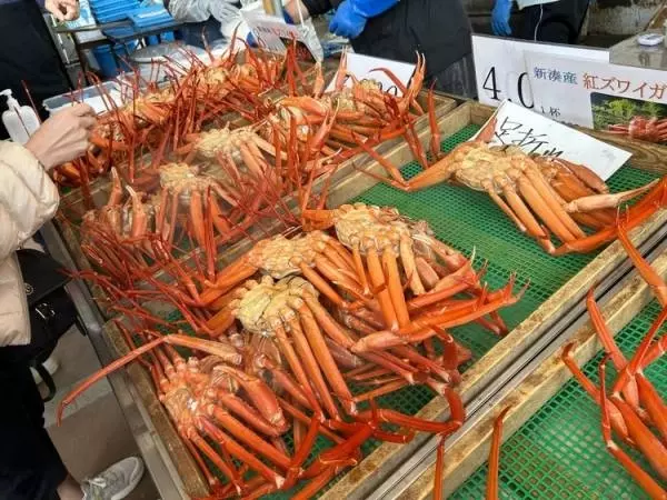 その日によって価格は変動しますが、この日は足折れ蟹が3,500円~4,500円、足が折れていない蟹は7,000円~8,000円で販売されていました