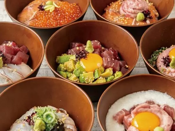 大阪駅から徒歩3分の場所にある【浪花ろばた 頂鯛 ルクア大阪店】。店名に“鯛”の字があるように、魚介類を使ったいろいろなメニューが用意されています。なかでも注目は海鮮丼。全15種という豊富なラインナップで、さまざまな味わいを楽しむことができます。