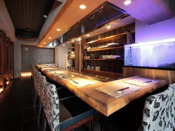 銀座駅から徒歩1分の【銀座鉄板焼ORCA】は、本格的な鉄板焼が食べられる隠れ家的なお店。店内はデザイナーのセンスが光るスタイリッシュな空間になっていて、高級感が漂っています。鉄板前のカウンター席は、ダイナミックな調理風景を眺めながら食事が楽しめる特等席。プライベート感のある個室席もオススメです。