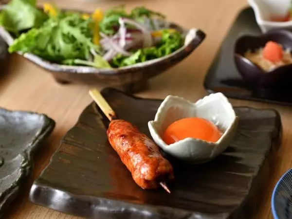 扱う鶏にこだわり、愛知県の「名古屋コーチン」、千葉県の「総州古白鶏」、鳥取県の「匠の大山鶏」の3種の厳選鶏を使用。熟練の料理人が精妙な技を駆使して、備長炭で焼き上げます。人気の『つくね』には濃厚な卵黄が付き、串の後に提供される少量のご飯とともにミニTKG「たまごかけごはん」を楽しむことも可能。焼鳥に合う日本酒も揃っています。