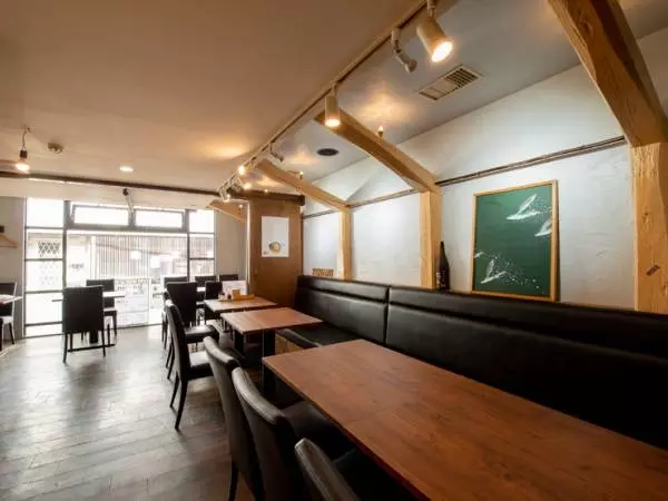 お店へは店頭に吊るされた「平戸直産焼あごラーメン」と書かれた赤ちょうちんを目印に。店内はカウンター席とテーブル席が用意されていて、人数を問わずくつろげるつくりになっています。ランチが16:00まで(ラストオーダー15:30)利用可能なのもポイント。ボリュームあるメニューを手頃に味わうことができます。