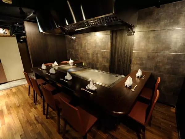 静かな雰囲気で、ゆったりと過ごせるのもポイント。席は、目の前の鉄板でステーキを仕上げてくれるカウンターと自分好みに仕上げられる焼肉中心のテーブルという、2種類の個室、半個室に分かれています。別に入口を設けた個室もあり特別感も。グラス1杯からオーダーできるワイン片手に、厳選された肉をじっくり味わいましょう。
