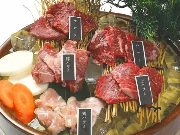 【最強ハラミ焼肉いちぼ野々市店】は、店名にもあるようにハラミにこだわったお店。肉の種類によって違うハラミの味を楽しめる『名物ハラミ桶盛5種(2~3人前)』は、牛、鶏、豚の各ハラミを盛り合わせたメニュー。ほかにもボリュームのあるメニューがそろっています。