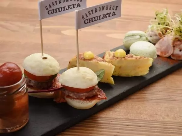 祇園四条駅から徒歩1分。【チュレタ】はスペイン料理を味わいながら、早い時間でもお酒を楽しめるスペインバルです。看板メニューは骨付き肉を溶岩石グリルで焼き上げた『牛肉のチュレトン』。