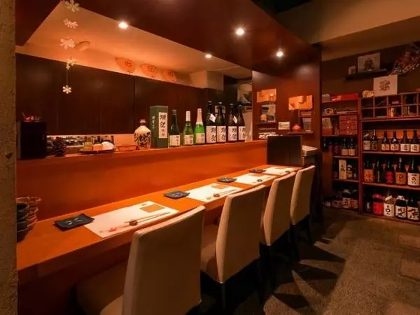 隠れ家のような佇まいや、上品な木の設えがシックな内装に心落ち着きます。和食の味わいを引き立ててくれる日本酒は、全国各地から取り寄せた銘柄がそろい、季節限定品にも出合えます。個室や半個室、カウンター席のほか、テーブル席は土曜日限定で貸切利用も可能。さまざまなシーンで利用できます。