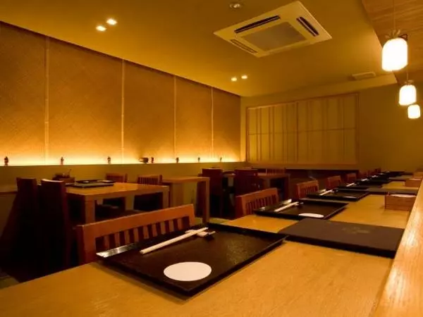 細い路地奥の隠れ家のような店に入ると、間接照明に照らされぬくもりを感じる空間が広がっています。初めて訪れるならば、板場と接しているカウンター席がオススメ。大将との会話を楽しみ、職人技を眺めながら食事ができます。完全個室になる座敷席は、グループ旅行の夕食や中規模の食事会にぴったりです。