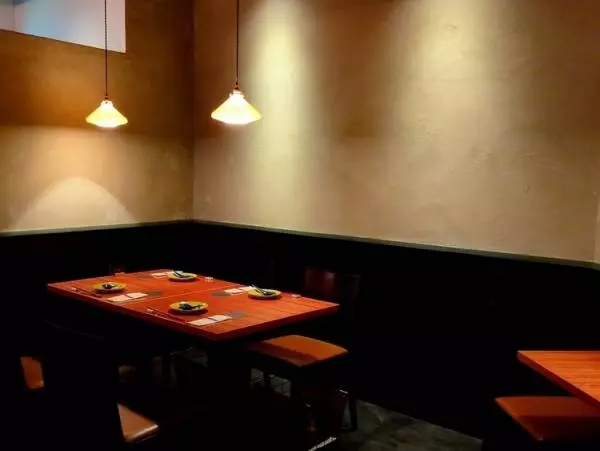 カウンター席。そっと灯りをともした金のテーブルライトが寄り添い、落ち着いた雰囲気にホッと一息つきたくなります