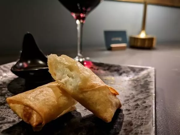 皮にチーズを加えることでホワっと香り立つ春巻き。中には鱈が入っていることで重くならずに食べやすく、パリパリと軽やかな食感の上から好みで蜂蜜をかけていただきます。