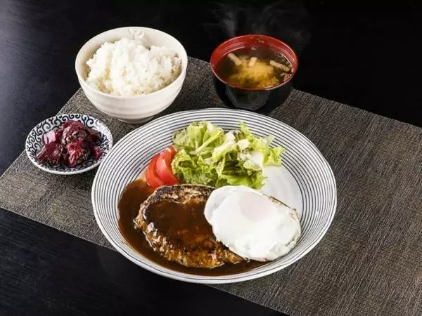 200gのハンバーグに半熟卵を添えた『手作りハンバーグ』は店一番の人気メニュー