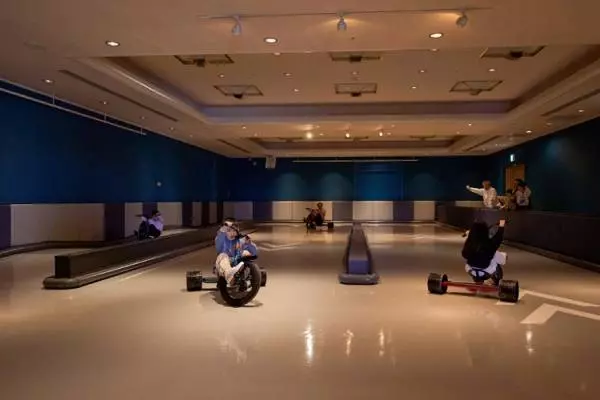 隣には、小学生以上(身長120cm以上)の子どもを対象としたドリフト三輪車サーキットがあります。スイスイ進むことができる三輪車に乗り、サーキットの中で自由に走り回るのに夢中に!大人も乗って楽しむことができます。