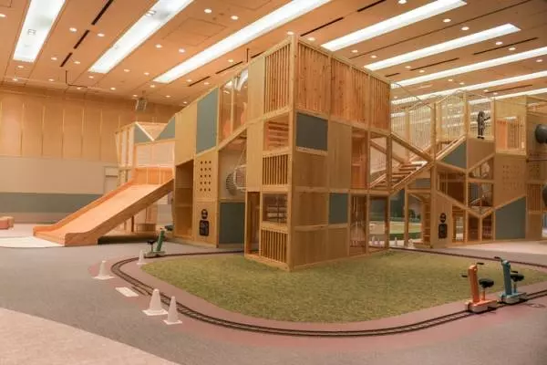 まだ大きな遊具で遊ぶのが難しい、0歳から6歳までの未就学児を対象としたキッズゾーンもあります。コーナーエッジなど、すべてに丸みを帯びたつくりで安全性も考慮したエリアになっています。