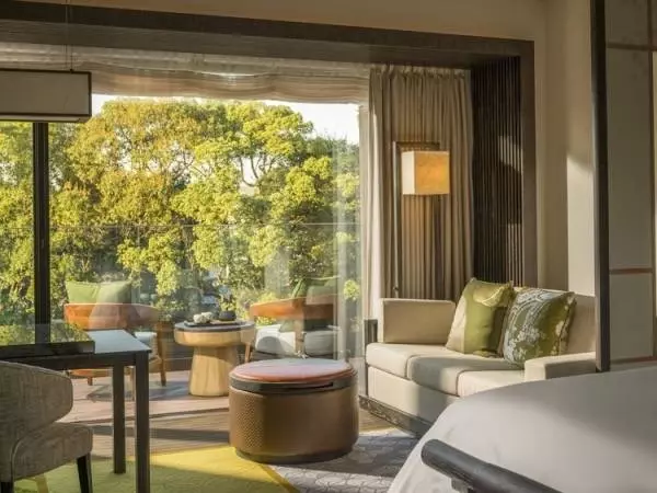 館内は、ハーシュ・ベドナー・アソシエイツがデザインを担当。「積翠園」を囲むように123の客室と57のホテルレジデンスを有します。4階にある「フォーシーズンズルーム」は、プライベートバルコニーから「積翠園」と東山十八峰を眺めることができる客室。反対側の京都の街並みを臨むことができるお部屋も人気です。また、我が家のように寛ぎたいゲストには、キッチンや洗濯機などが備わったレジデンシャルスイートもおすすめ。