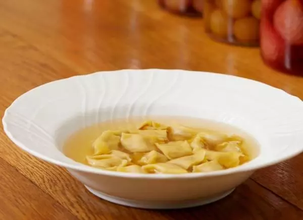 2,500円。アニョロッティとは、ピエモンテの方言で「ラビオリ」という意味。北イタリアの伝統的なパスタで、丁寧にとったブロードと合わせていただきます。とても澄んだあじわいが印象的なスープで、胃に染みわたります。