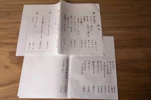 小林さんのお気に入りメニューは『千代幻豚の白味噌しゃぶしゃぶ』とのこと。アラカルトメニューが手書きされた原稿用紙には、「裏(に)メニュー」も