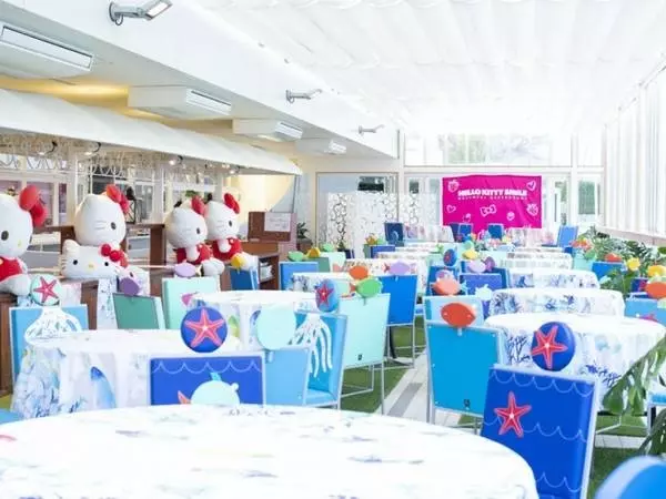 海をイメージした内装とたくさんのハローキティに囲まれた夢の空間