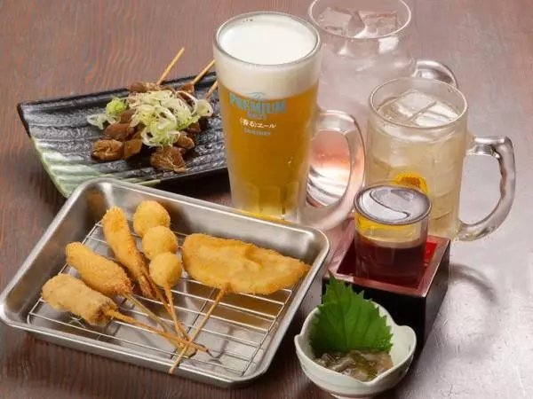 串カツや天ぷら、どて焼きなど、居酒屋定番メニューを手頃な価格で