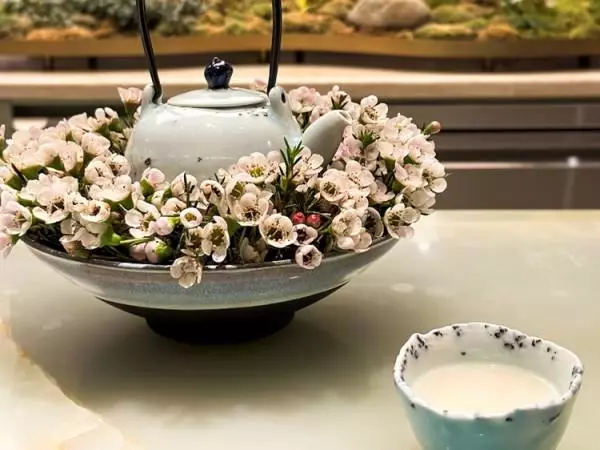 「コッジャムというマッコリで、花畑のなかでお眠りという意味です」と紹介してくれたのはソムリエのキムさん。