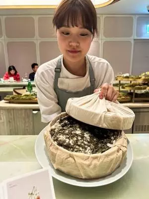 トッカルビが最後に出てくるとは思ってもいませんでしたが、この流れではありですね。牛肉とアワビの組み合わせも伝統的なものですとシェフ。ソムリエがCh.ラフィット・ロートシルトの新ワイン「アンセイヤン」を合わせてくれました。これもおいしい。
