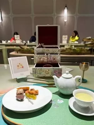 そしてヨモギともち米のお菓子、それにアイスとケーキ。伝統的に箸で食べてほしいと箸が添えられます。