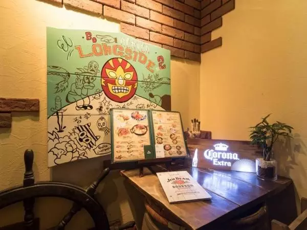 お店は、多国籍ビール食堂「Long Side」と大きく書かれた看板が目印。店内の壁にはセンスよくイラストなどが飾られていて、ゆっくりと時間を過ごすことができます。座席はカウンター席のほか、個室も用意。非接触型のモバイルオーダーが導入されているのも、うれしいポイントです。
