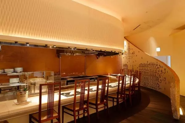 ここでは、鉄板焼きのフレンチが楽しめます。名物の『フォアグラ入りハンバーグステーキ』は、厳選した黒毛和牛にブランド豚を加えたタネを1日寝かせ、フォアグラを包み込んだ風味豊かなハンバーグ。贅沢さと優雅さを一度に味わうことができる一皿です。