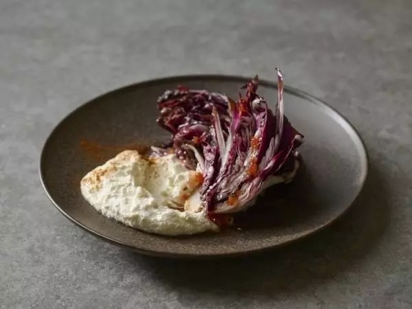 苦みの強いトレビスの表面を軽く焼き、特製のセサミビネグレットをかけた一皿。