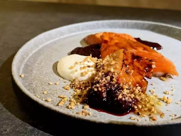 『炙り〆サクラマス バルサミコベリーと麹フロマージュブラン』