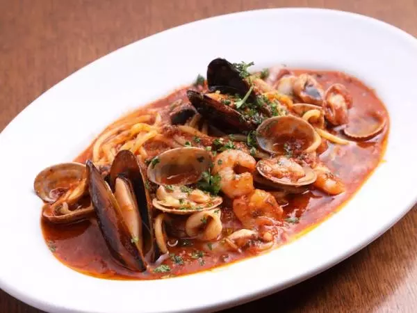 生パスタがピリ辛味とマッチする『絶望~オリジナル辛いペスカトーレ~』