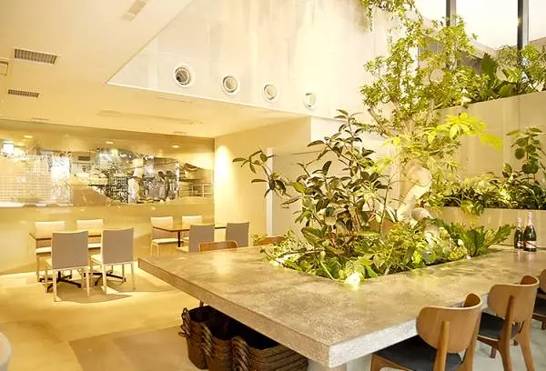 天井が高い開放的な空間に、植物がたくさん配されています